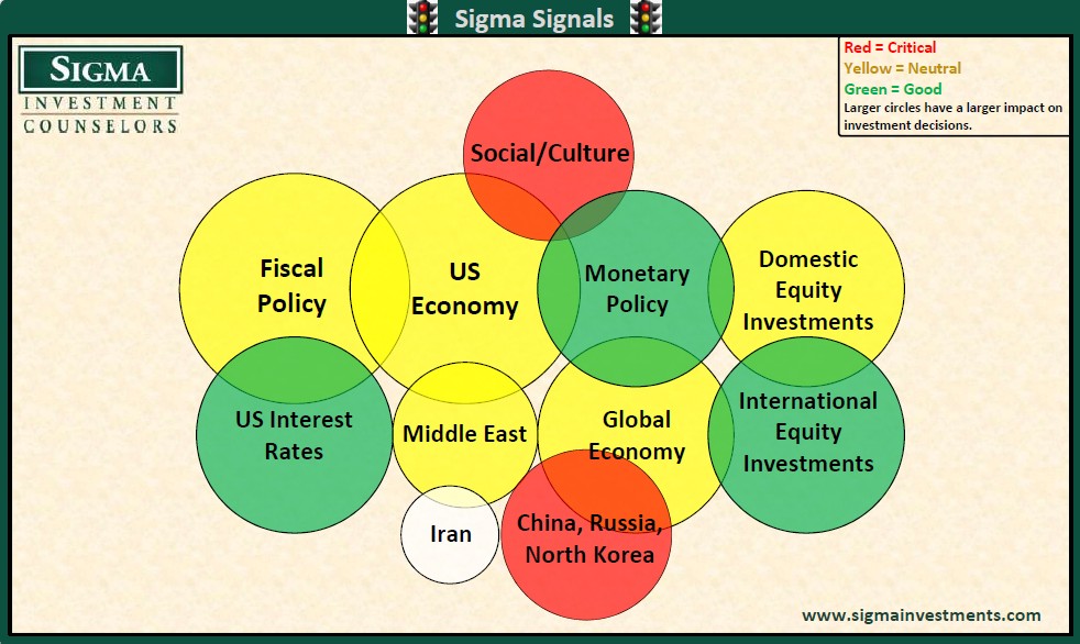 While many regional actors quietly support weakening Iran’s military capabilities, an active conflict raises near-term instability across the Middle East. Iran is likely to continue to respond more virulently through proxy groups and asymmetric attacks, increasing the risk of broader regional disruption and energy market volatility. Although the long-term balance of power likely improves as Iran is degraded, the immediate environment becomes more unpredictable. For that reason, we have shifted our Middle East Signal from green to yellow.